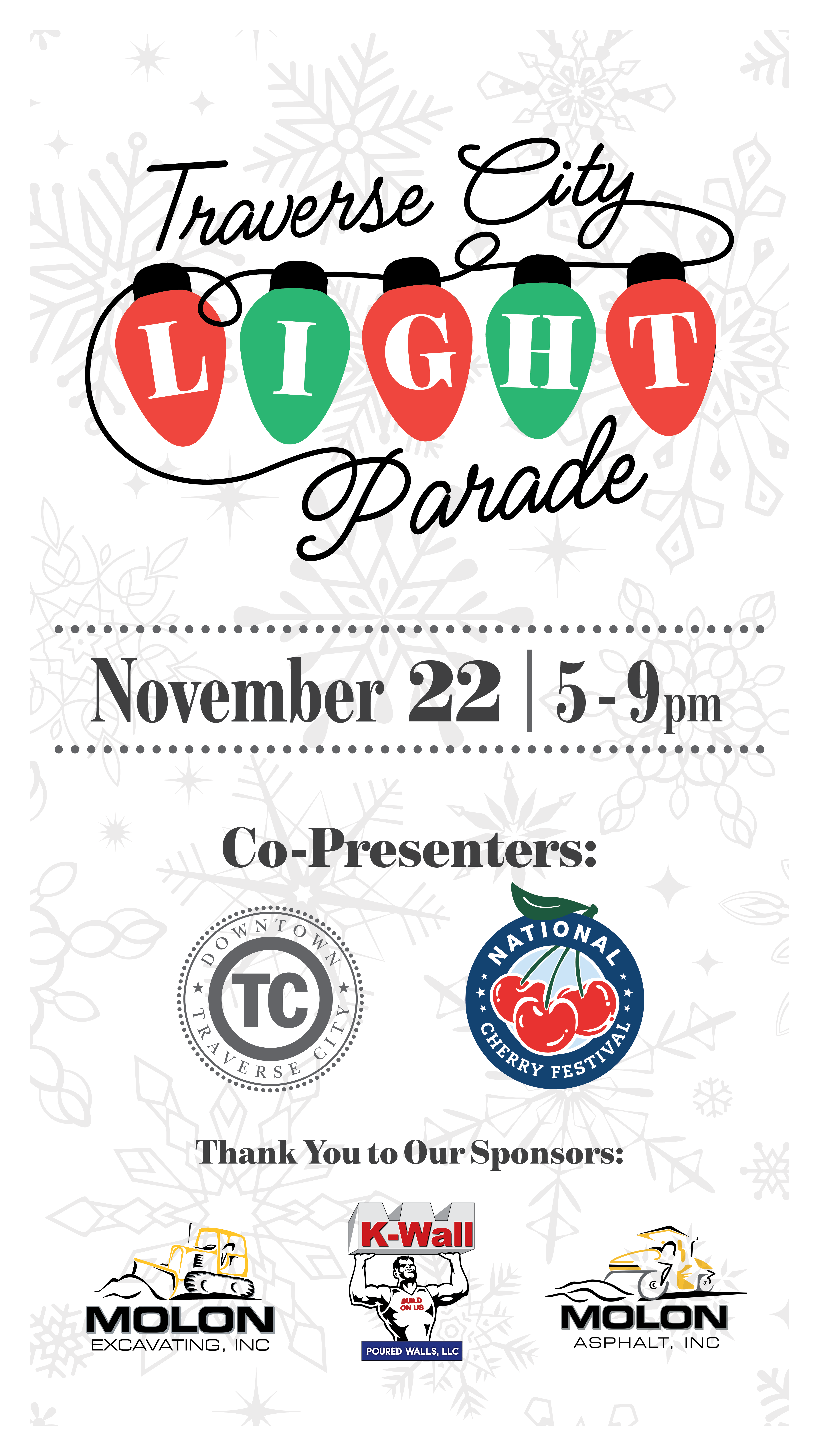 Please share the promotional graphics below with your fans/followers, customers, email lists, family, and friends. Spread the word — Traverse City Light Parade is coming soon!
